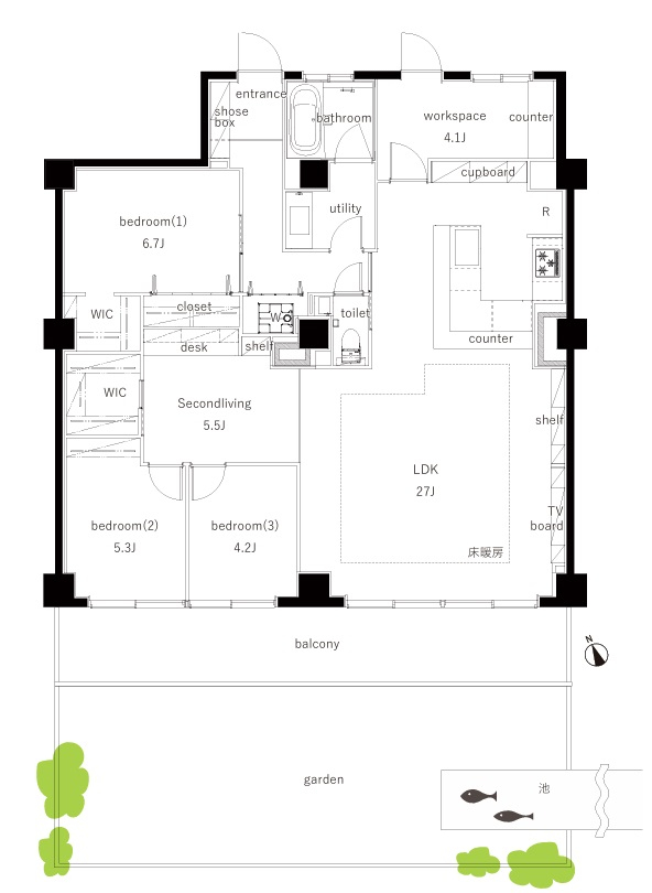 シャンボール目白の1階115㎡は契約になりました。